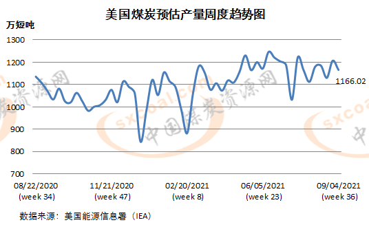 8月最后一周美国煤炭预估产量环比降3.41%