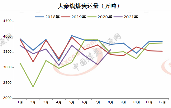 2021年1-8月大秦线累计完成货物运输量27582万吨,同比增长5.55%,增幅较前7月收窄0.38个百分点。