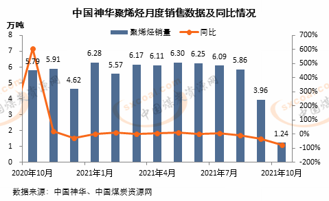 10月份,中国神华合计销售1.24万吨聚烯烃产品,同比减少4.55万吨,下降78.6%,环比减少2.72万吨,下降68.7%。