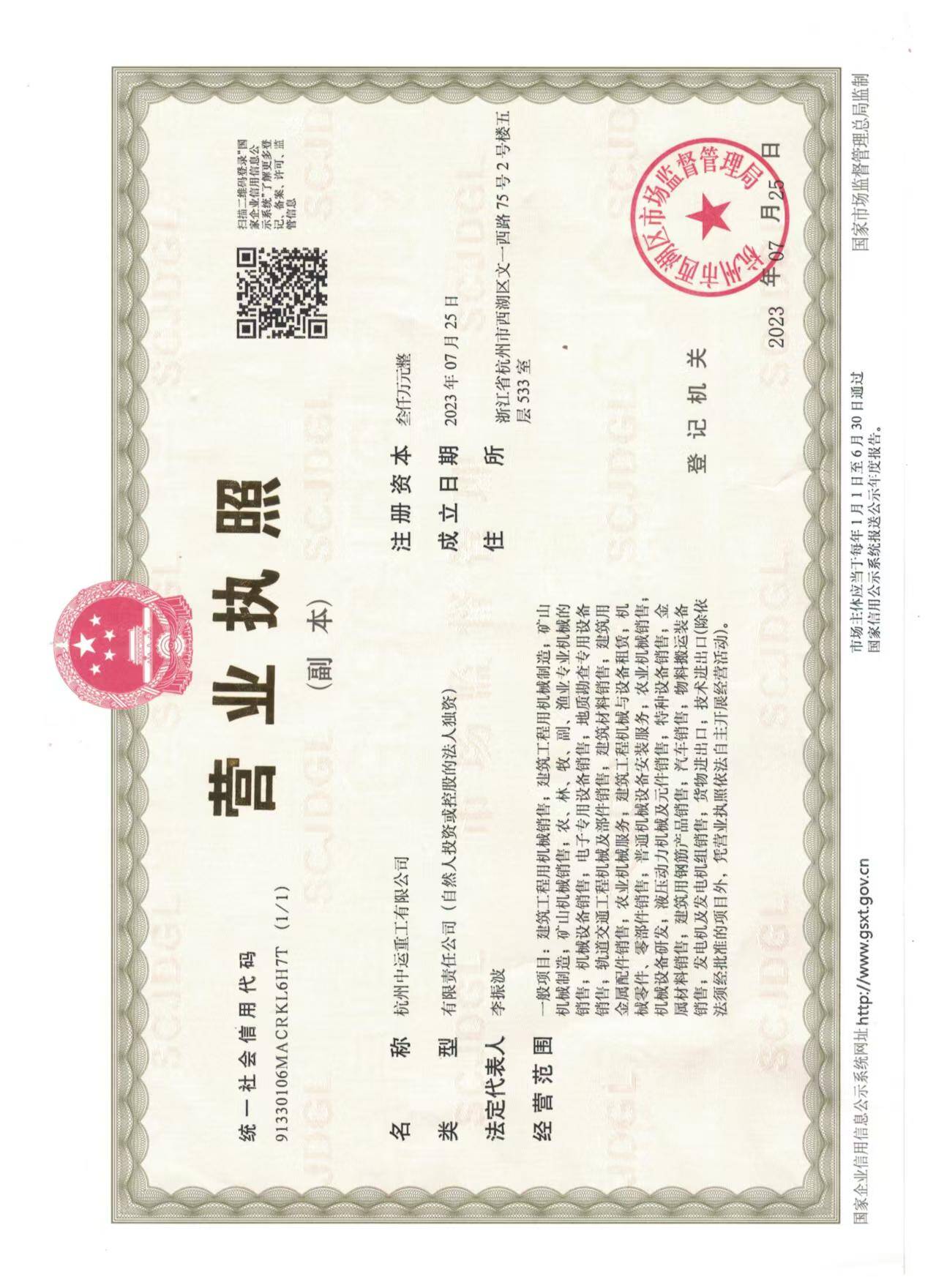 杭州中运重工有限公司经营范围包括建筑工程机械、起重机设备、环保设备、农业机械及配件制造、销售;机械制造技术咨询、技术服务;机械设备、电气设备(不含特种设备)维修;金属制品(不含稀贵金属)加工;金属容器(不含压力容器)制造、维修;汽车及配件、金属材料(不含稀贵金属)、电机、电工器材、建筑材料销售;包装箱制造;货物及技术进出口(国家禁止或涉及行政审批的货物和技术进出口除外)。(依法须经批准的项目,经相关部门批准后方可开展经营活动)
