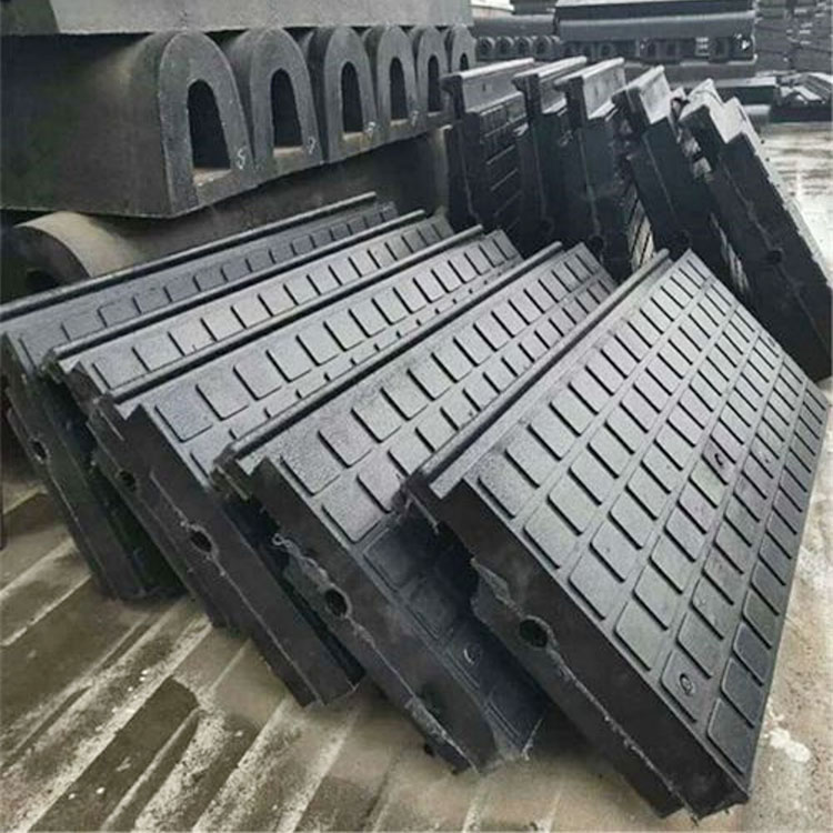 橡胶道口板具有随力强,防震性能,绝缘性能好,耐磨,屡经压缩变形少,强性高,耐老化,不翻泥浆,使用寿命长等特点,经模拟由15万次提高到45万次,使用寿命长达10-15年,符合铁路提速及要求。使用它可提高机动车辆的运输能力,减少道口维修次数,避免因机动车辆熄火而引起的交通事故。无论从经济,社会效益等方面都值得推广应用。(水泥道口板容易损坏,铁道口板操音大。)该产品较原铺面板使用寿命高达3倍以上.