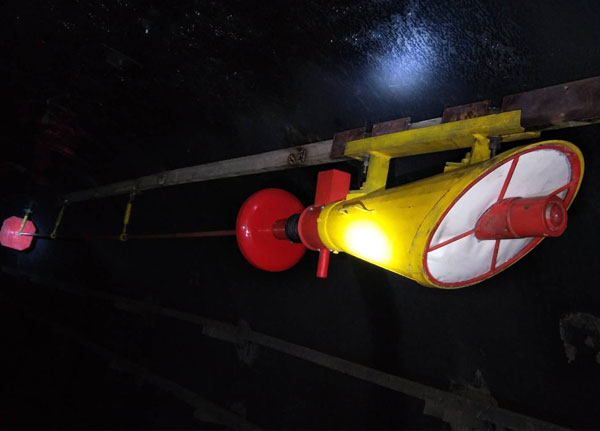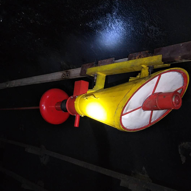 矿用自动隔爆装置采用超细干粉灭火,通过化学、物理双重灭火机能扑灭火焰。纯机械结构设计,不带任何电气元件,安装、维护成本低,检修周期长,无需人工日常维护,节约人力、物力、财力。启动时间短(14ms),灭火介质均匀布满巷道空间,无保护盲区,隔爆性能稳定等特点。