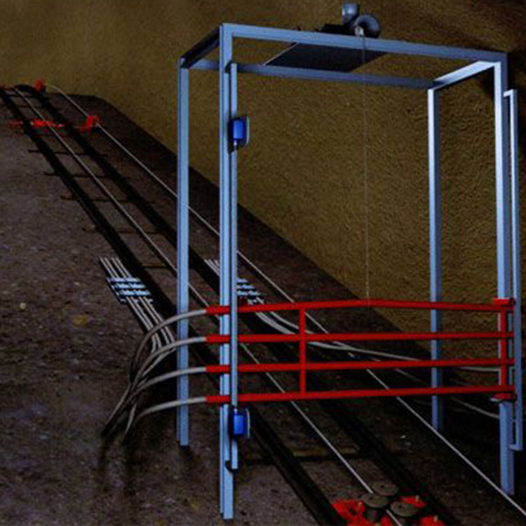 2、跑车防护功能,在巷道内安装常闭式挡车栏,对矿车因短绳或脱钩发生跑车后进行可靠拦截,实现了跑车防护。