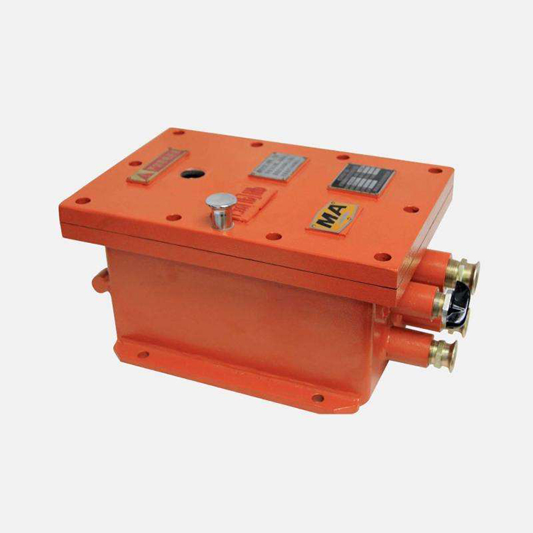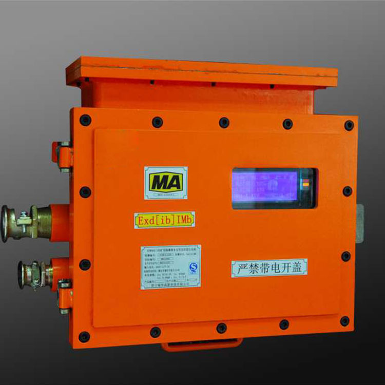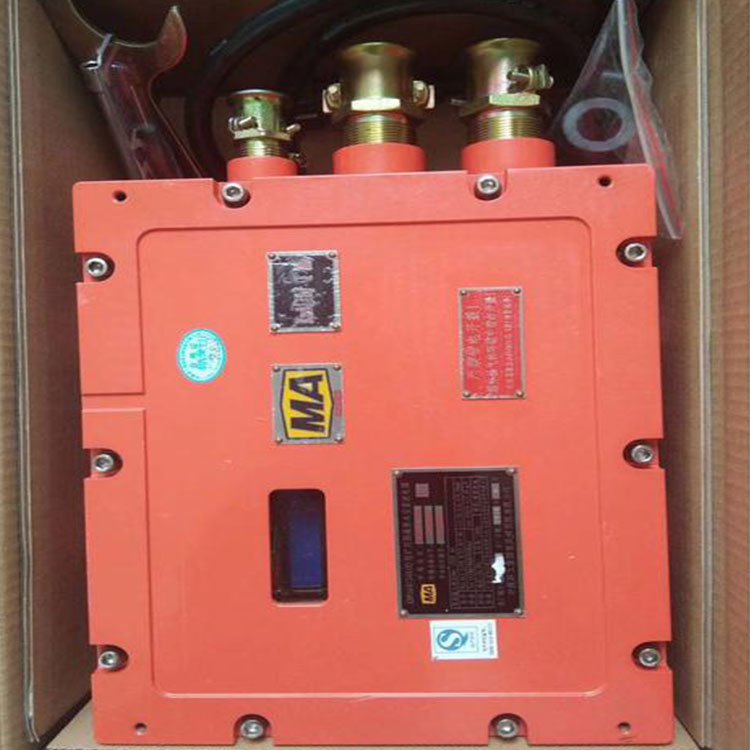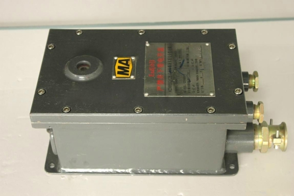 矿用隔爆兼本安型电源采用隔爆箱形式,在隔爆箱壳体侧面有三个喇叭口,较大的一个是交流输入口,另外两个是本安输出口,箱盖上有观察窗,可以查看电源的输入、输出等的状态。