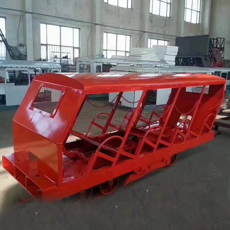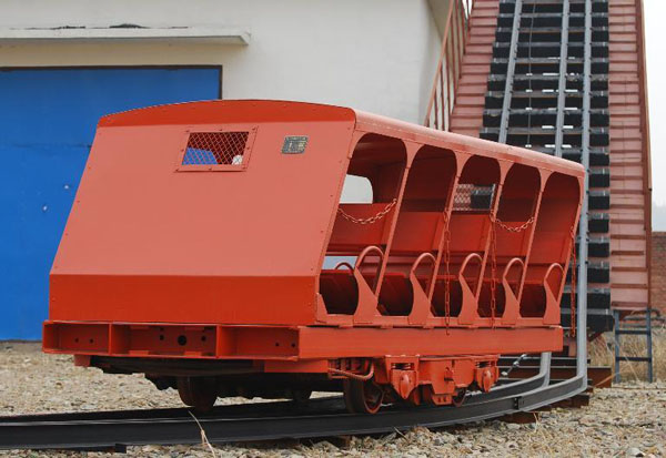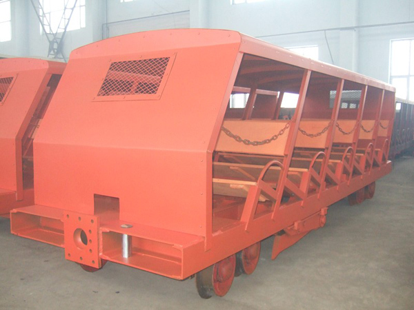 XRB15型抱轨式斜井人车是矿山斜井运送人员的重要安全设备。整个列车是由一头车(S1)、二头车(S2)、以及一定节数的挂车(G)和尾车(W)组成、每节人车乘坐人员均为15人。根据斜井倾角和提升能力大小的不同,列车的组列节数一般是由3—5节组成,乘坐人员45—75人。 XRB15型抱轨式斜井人车适用于600mm轨距,18kg/m、22kg/m、24kg/m的钢轨,木枕、水泥枕及水泥整体道床,倾角10。—40。。无煤尘和瓦斯爆炸危险的斜井。
