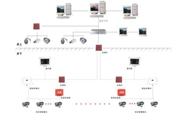 KJ864煤矿图像监视系统一般由计算机(含显示器)、打印机、视频光端机-接收机(井上)、KBA18矿用本安型摄像仪、KTG127矿用隔爆兼本安型光端机、LBY127矿用隔爆型硬盘录像机、XB127矿用隔爆型显示器以及光缆和其他必要设备组成。