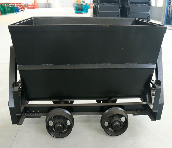 该翻斗矿车不需用任何辅助设施,可左右自动翻转,灵活、轻便。