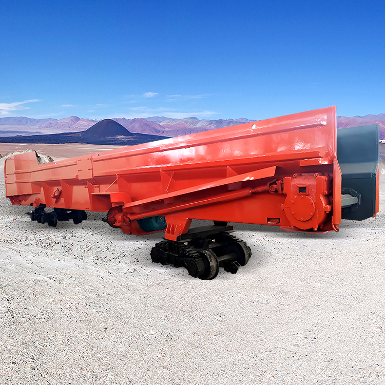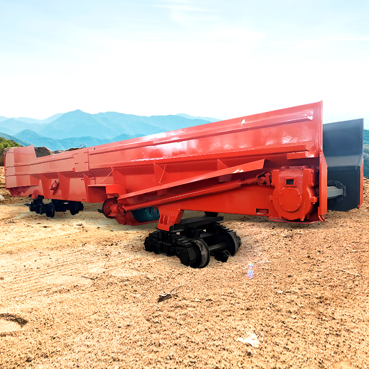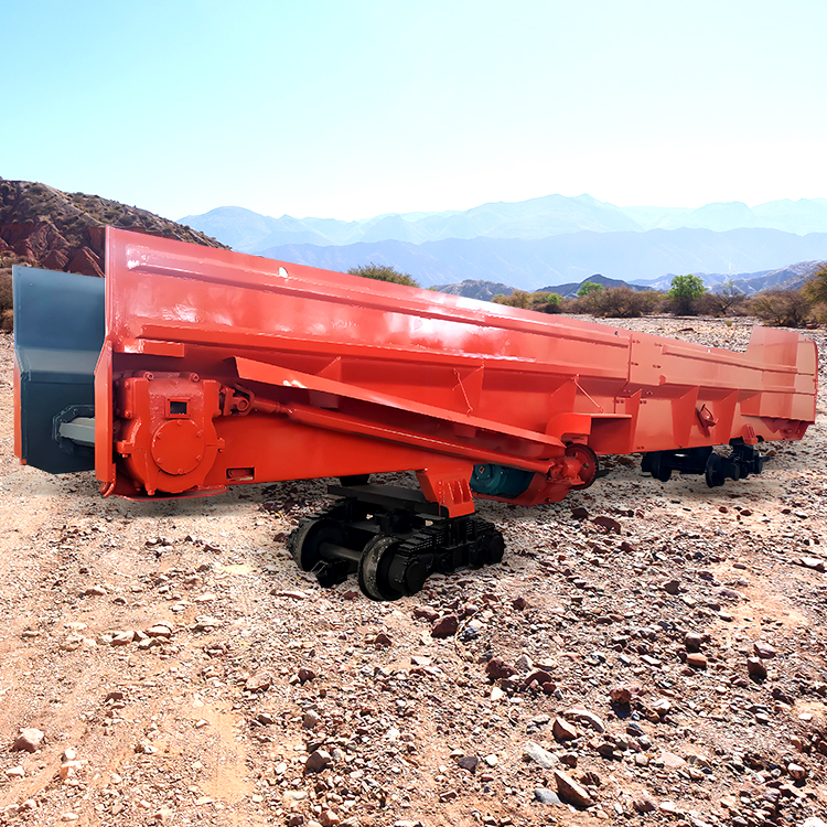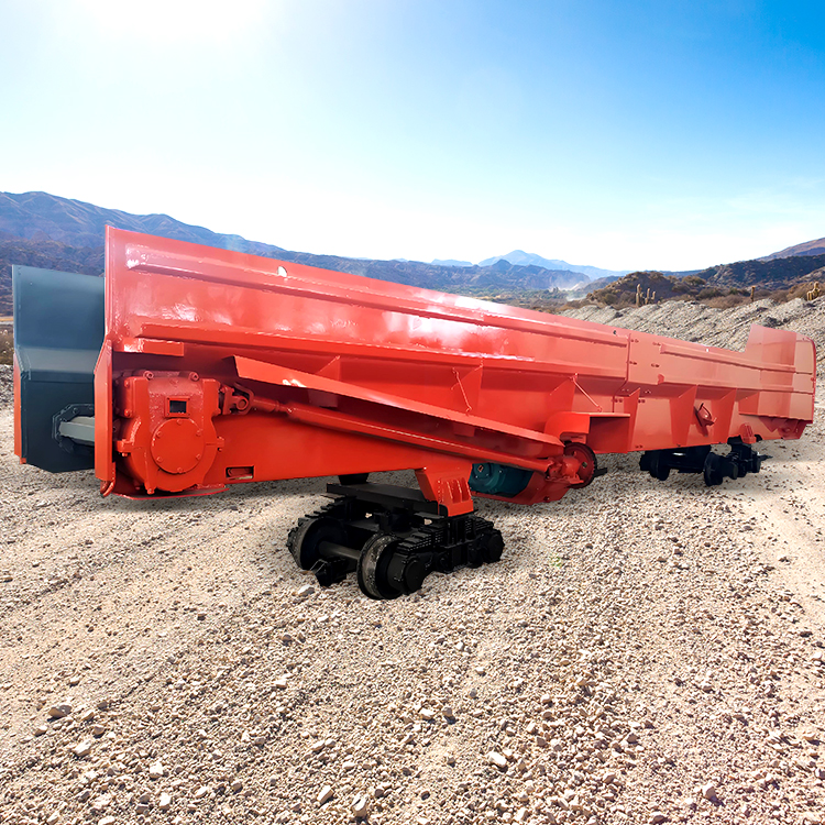 矿料石碴从车厢的装碴端装入,连续转动的刮板或链板运输机就自动地将矿料石渣转载到卸碴端;待整个梭车装满,由牵引电机车牵引至卸碴场,然后再开动运输机,便可安全可靠地向两侧卸碴,将矿料石碴自动卸掉。