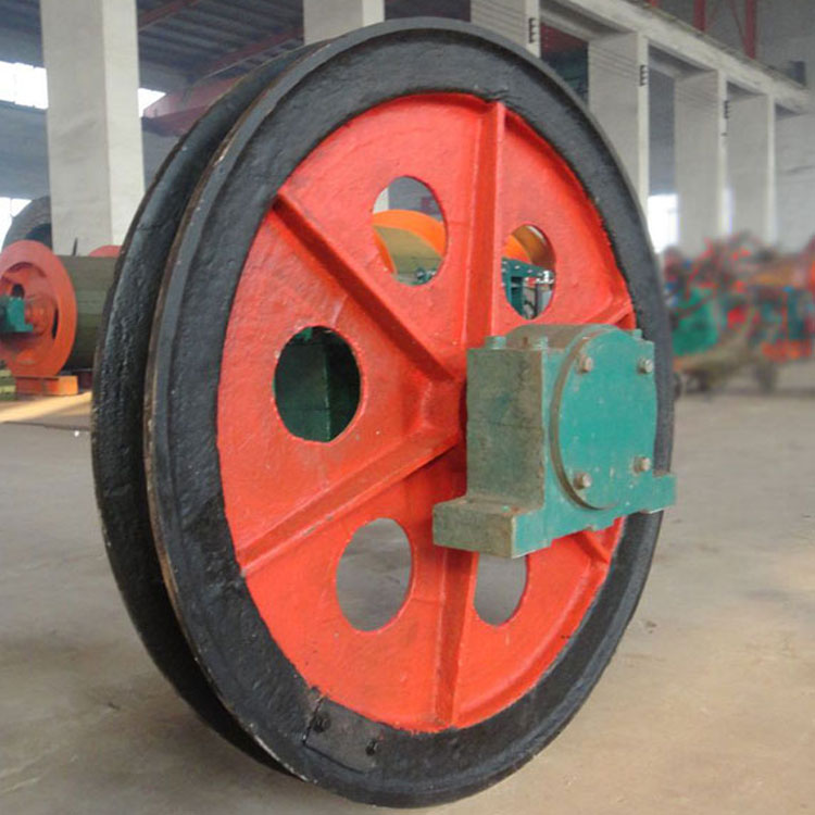 固定天轮安装在井架上,作支撑,供矿井提升时支拖提升机卷筒到提升容器之间,引导钢丝绳转向之用。绳槽带塑衬或胶块,增加钢丝绳的使用寿命。