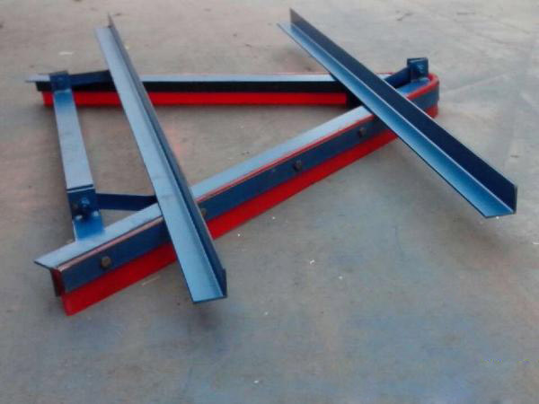 空段清扫器用于清除落到输送带下分支非工作面上的杂物以保护改向滚筒和输送带。需要装空段清扫器的地方是尾部改向滚筒前和垂直拉紧装置一个90°改向滚筒前两处。安装时,需使清扫器刮板的犁尖对着输送带运动方向,以便将杂物刮到输送机两侧的地面上。