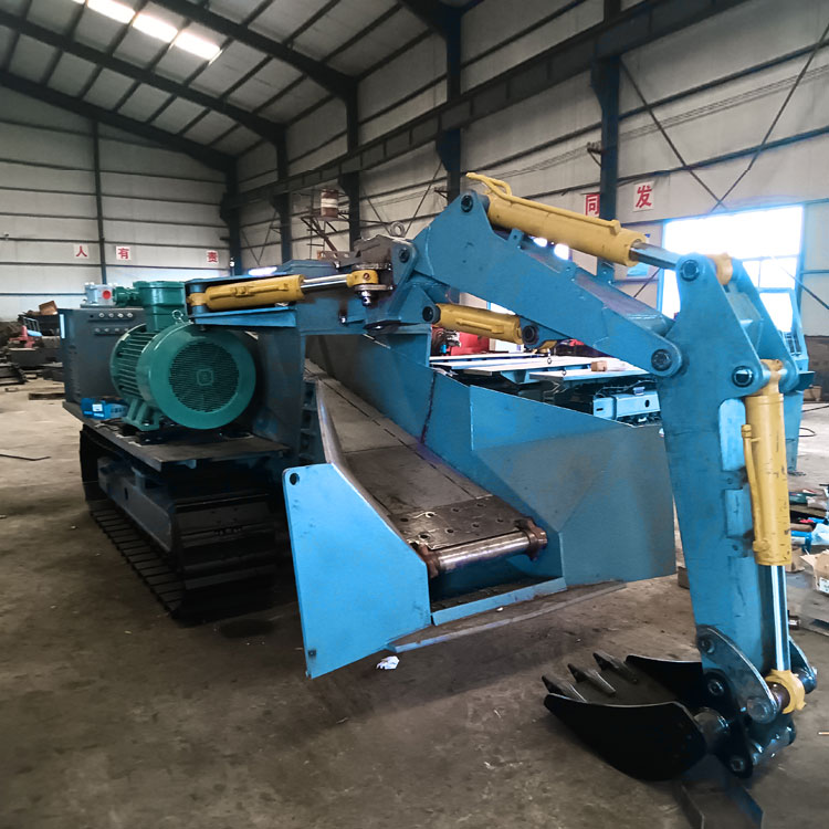 ZWY-L系列履带式防爆型扒装机,采用防爆电机及电器,严格按照“煤安”标准进行生产和组装。是一款适合在煤矿掘进巷道内用于装矿作业的扒装机。该机使用交流380/660v电源,大功率驱动马达,可以在≤25°斜巷道内工作。其输送部份分皮带输送及刮板输送。后部高度可调,伸出长度可根据用户运矿车尺寸定做。操作部分可分为先导式操作及机械操作两种形式供用户选用。该机结构紧凑,操作方便灵活,易于维修,是一款理想的煤矿掘进用装矿设备。
