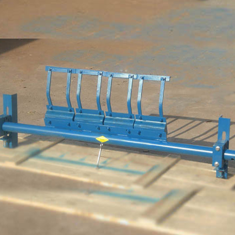 H型合金橡胶清扫器安装于头部卸料滚筒处,清除输送带上的粘附物料,完成一次清扫。