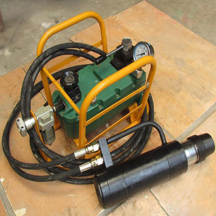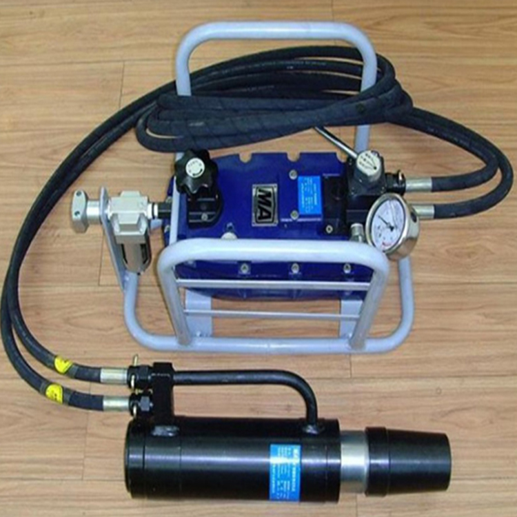 气动锚索张拉机具由张拉千斤顶、QYB-55型气动液压泵以及高压胶管等组成,构成一组煤矿巷道锚索预应力张拉安装的必备工具。张拉千斤顶内置工具锚,不但实现自动锚固和自动退锚,而且了操作安全,提高了工作效率。