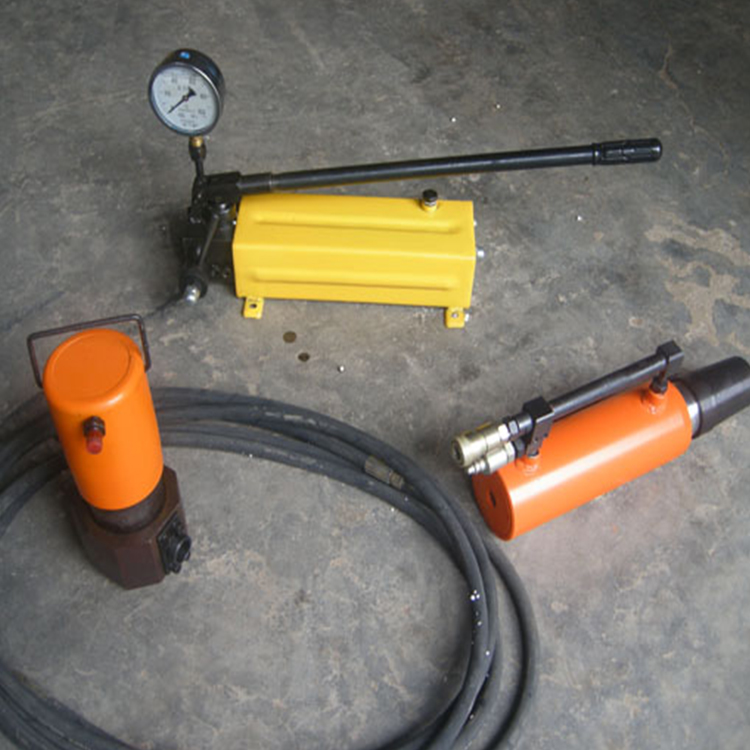 手动锚索张拉机具由张拉千斤顶、MS-200-1型手动油泵以及高压胶管等组成,构成一组煤矿巷道锚索预应力张拉的必备机具。该机具也适用于使用锚索的交通隧道和冶金、化工等矿山工程。