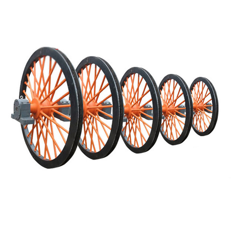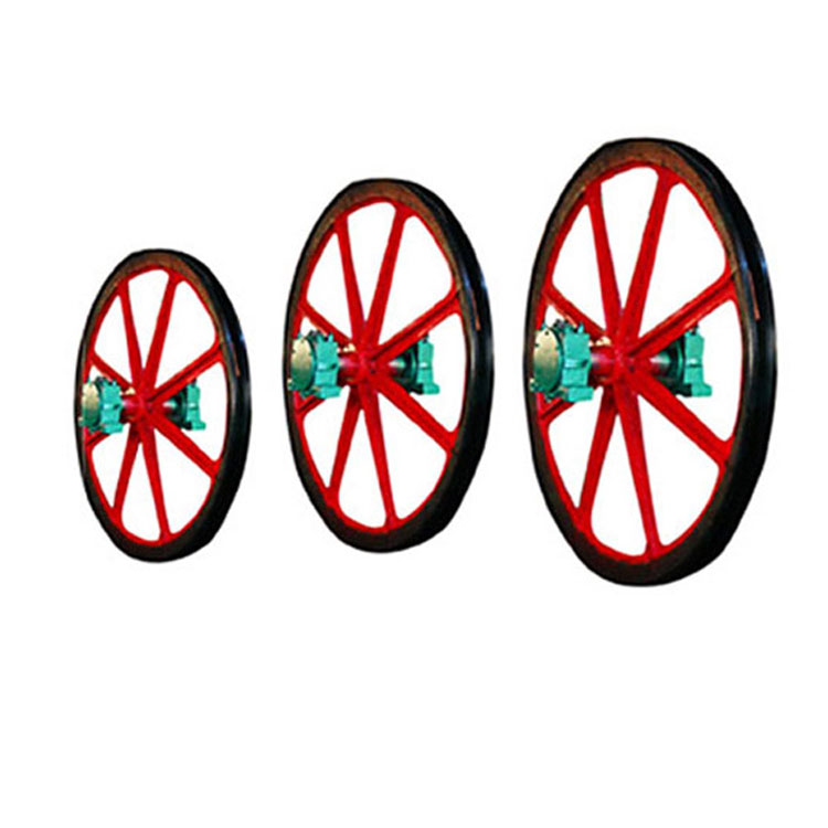 立井天轮是安装在井架上,起支撑作用的天轮;供矿井提升时支拖提升机卷筒到提升容器之间,以引导钢丝绳转向。绳槽带塑衬或胶块,可以增加钢丝绳的使用寿命;主要用于立井提升及斜井箕提升。立井天轮和凿井天轮的轮体只作旋转运动。