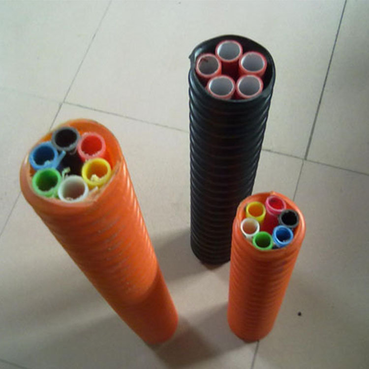 束管是一种挤出聚乙烯可扰管,由若干根芯管、绕布、护套三部门组成:芯管有阻燃和导电机能,中层环绕纠缠玻璃纤维布材料,外层护套为有阻燃和导电机能的聚乙烯塑料护套。可在潮湿、积水、地下管道及霉菌生产环境下使用; 束管远销山西、新疆、河南各大煤矿,成为各大煤矿气体采样、信号传递不能缺少的一种管材。