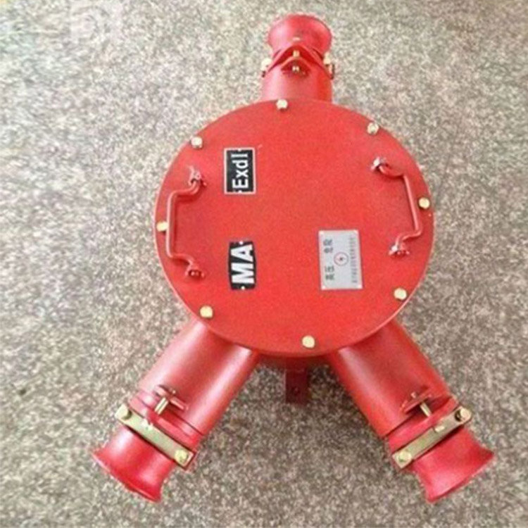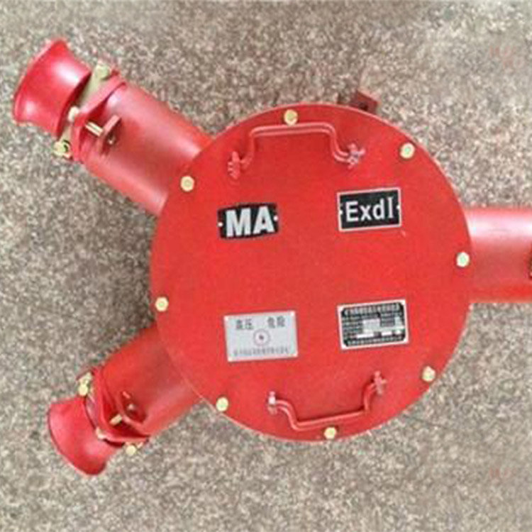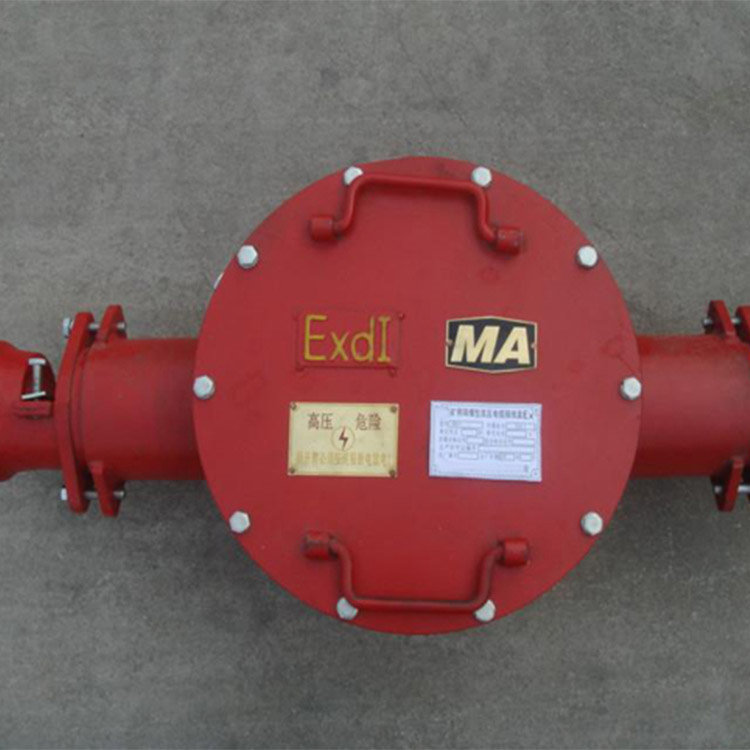 10KV高压接线盒适用于爆炸性气体(甲烷)和煤尘混合物的矿井中,供煤矿井下电压至10千伏,系统额定断开电流至12.5KA供电系统中,连接两段矿用电缆之用。
