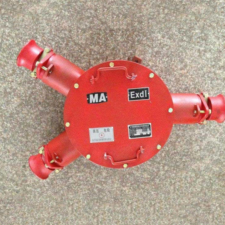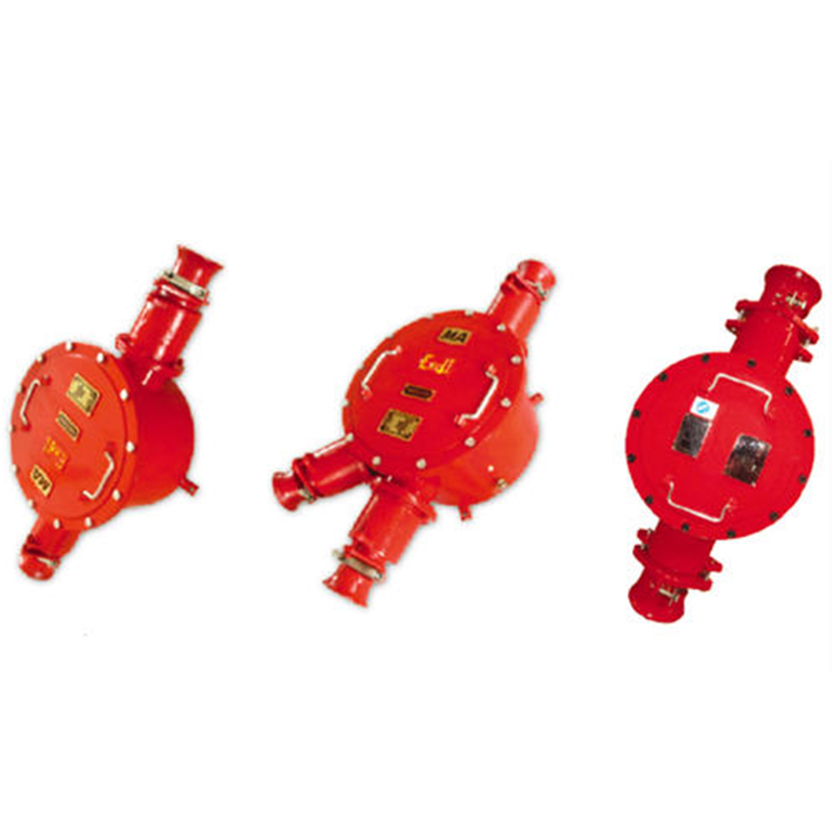 BHG系列高压电缆接线盒适用范围:BHG1-200、315、400/10 系列矿用隔爆型高压电缆接线盒(以下简称接线盒)适用于含有爆炸性气体(甲烷)、煤尘混合物的煤矿井下,在交流50Hz、电压至10kV的供电网络中,供信号、照明、动力设备中作电缆连接和分支之用。