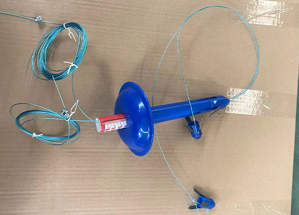 3.安装好套管,套筒底端接牢防水牌,防水牌底沿距顶板约35mm,然后将深部锚头测绳与内测筒连接,浅部锚头测绳与外测筒连接。
