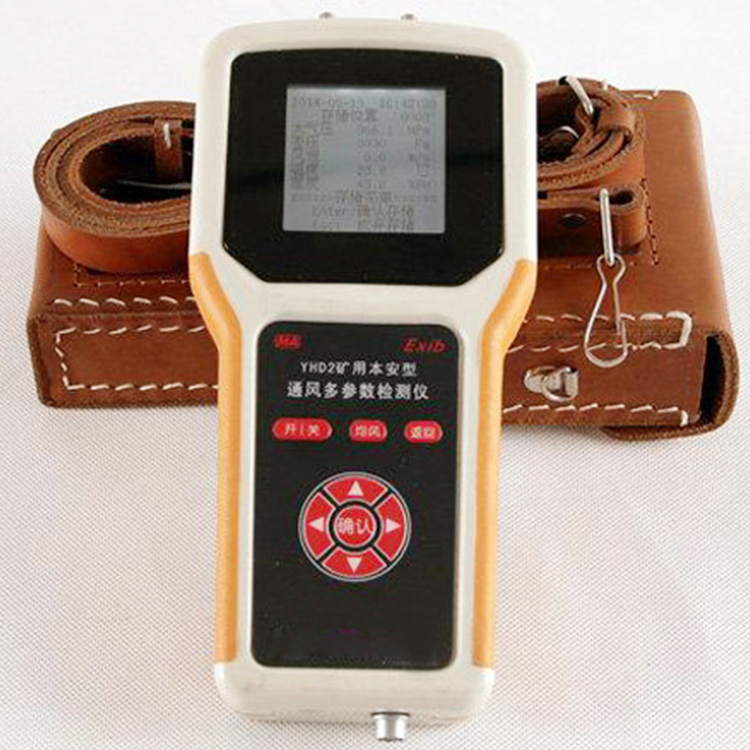 YHD2 矿用本安型通风多参数检测仪是一种可以检测矿井的大气环境和通风是否符合安全卫生标准的一种仪器。它可根据矿井通风系统图上标注的测试点,通过对井下绝 对压力、相对压力、风速、温度等参数的测量,获得巷道内风压、风速数据并依据测量的大气压力值和温度等参数对风压、风速进行修正,为矿井提供风网压能图。从而为巷道均风、防火、灭火,科学管理矿井通风提供可靠数据。