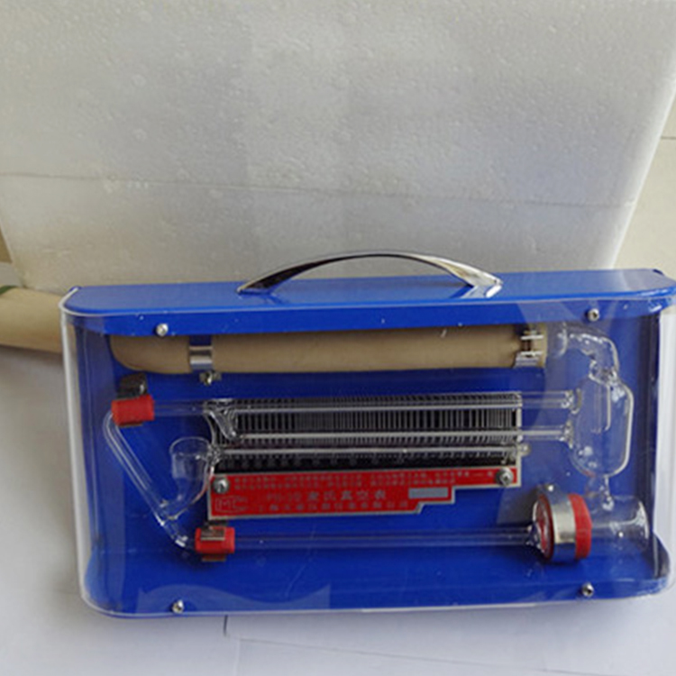 1、运输及使用时严防倒置平卧,以防水银倒回真空橡皮管内或水银珠进入中间闭管毛细管内堵塞毛细管,影响测量精度。因此在每次使用前先将真空橡皮管竖直,以使水银能流回真空计玻璃管内。