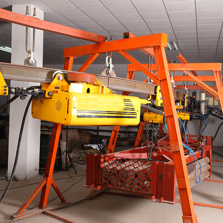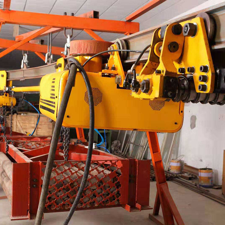 矩后带动驱动夹紧轮旋转,沿吊轨立面滚动,可随轨道水平、转弯、上下俯仰行进。它主要