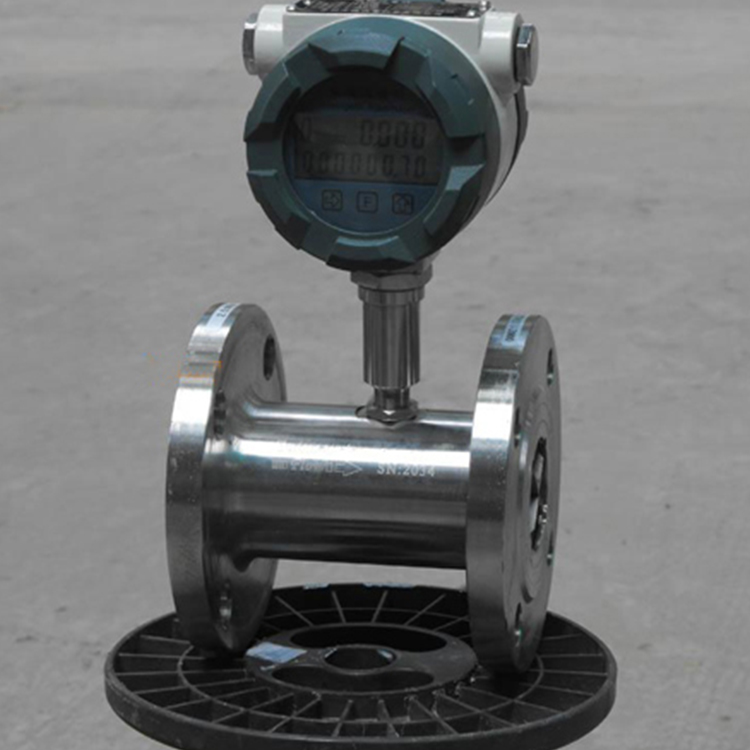流体流经传感器壳体,由于叶轮的叶片与流向有一定的角度,流体的冲力使叶片具有转动力矩,克服摩擦力矩和流体阻力之后叶片旋转,在力矩平衡后转速稳定,在一定的条件下,转速与流速成正比,由于叶片有导磁性,它处于信号检测器(由磁钢和线圈组成)的磁场中,旋转的叶片切割磁力线,周期性的改变着线圈的磁通量,从而使线圈两端感应出电脉冲信号,此信号经过放大器的放大整形,形成有一定幅度的连续的矩形脉冲波,可远传至显示仪表,显示出流体的瞬时流量和累计量。在一定的流量范围内,脉冲频率f与流经传感器的流体的瞬时流量Q成正比,流量方程为:Q=3600×f/k 式中: