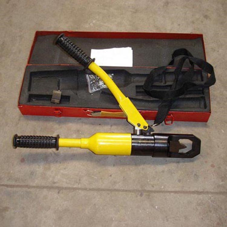 3、压动手动油泵,使劈刀顶出推进至螺母,当劈刀顶进螺母二分之一时,须小心的压动手泵,以免用力过猛,劈刀快速将螺母劈开损伤螺栓丝扣。
