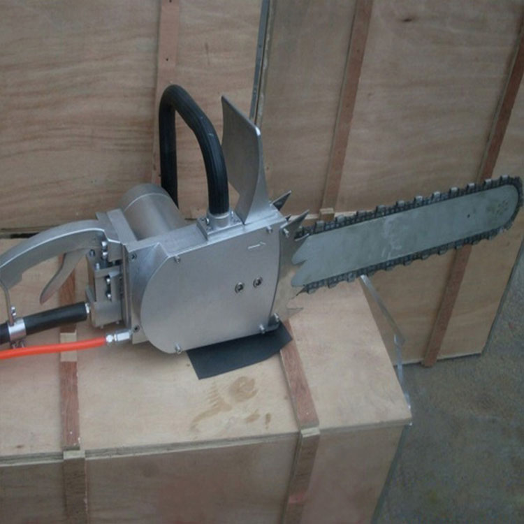 风动链锯是我公司精心研制的煤矿巷道支护维修、截割木料的专用工具。适用于瓦斯煤矿生产的需要,深受广大用户的欢迎。 风动链锯替代了手工刀锯截木料,既减轻了人们笨重体力劳动,又提高截割速度。 替代了过去常用的电动刀锯,防止了带电作业,更符合安全生产的需要。 操作直接、简便。井下风源方便,安上风管即可作业,不受防爆的约束。