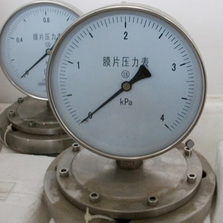 YPF膜片压力表由测量系统(包括法兰接头、波纹膜片)、传动指示机构(包括连杆、齿轮传动机构、指针和度盘)和外壳(包括表壳和罩圈)等组成。
