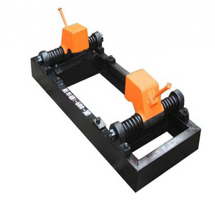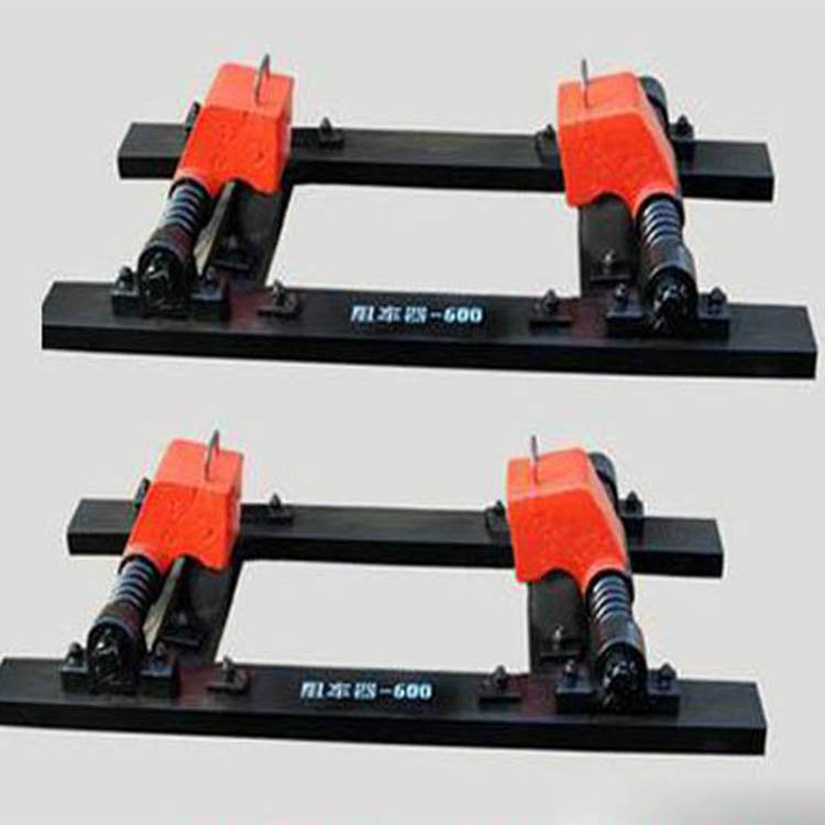 双轨阻车器由两根平行的固定支座和阻车杆、前支承座、后支承座及脚踏连动装置组成