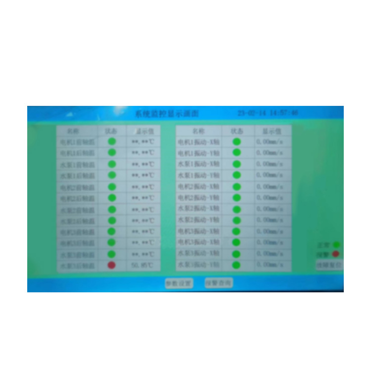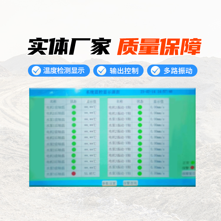 6、电机主轴承温度振动超限声光提示;本地声光提醒或远程声光报警。