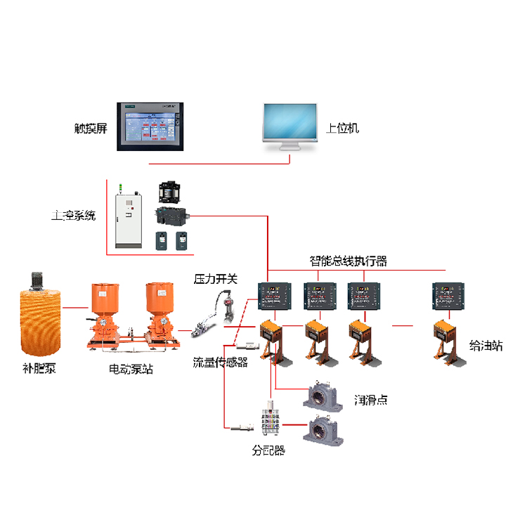 2.实时监测供油状态:实时反馈每一个供油支路是否堵塞,以确保每个润滑点都能得到充分润滑;实时检测系统压力;流量传感器及时反馈真实供油情况,实时掌控每一个润滑点的状态。
