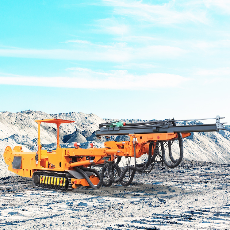 煤矿用液压掘进钻车主要适用于煤矿及其它地下工程中巷道、隧道、隧洞的掘进施工作业;该钻车采用全液压凿岩系统,系统先进,设有防卡钎装置,凿岩速度快,工作效率高;灵活的凿岩机构对巷道的工作面、顶板、侧帮均能凿岩作业,装上短滑架还能很方便的钻凿向上锚杆孔。该钻车的特点是结构紧凑、外形尺寸小、节约能源、噪音低、功能多、效率高。与我公司生产的挖掘式装载机、侧卸式装岩机配套使用,实现岩巷掘进机械化作业,可大大提高掘进速度。