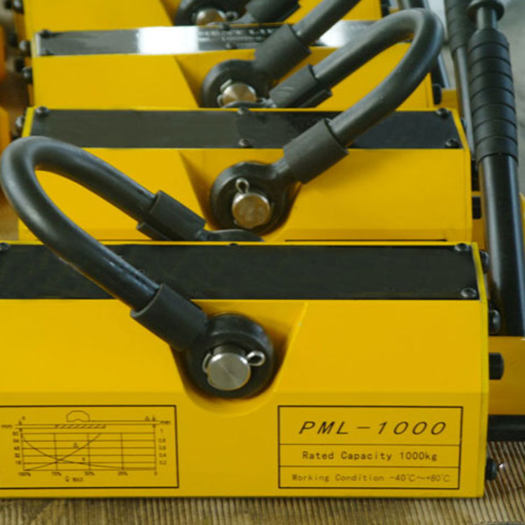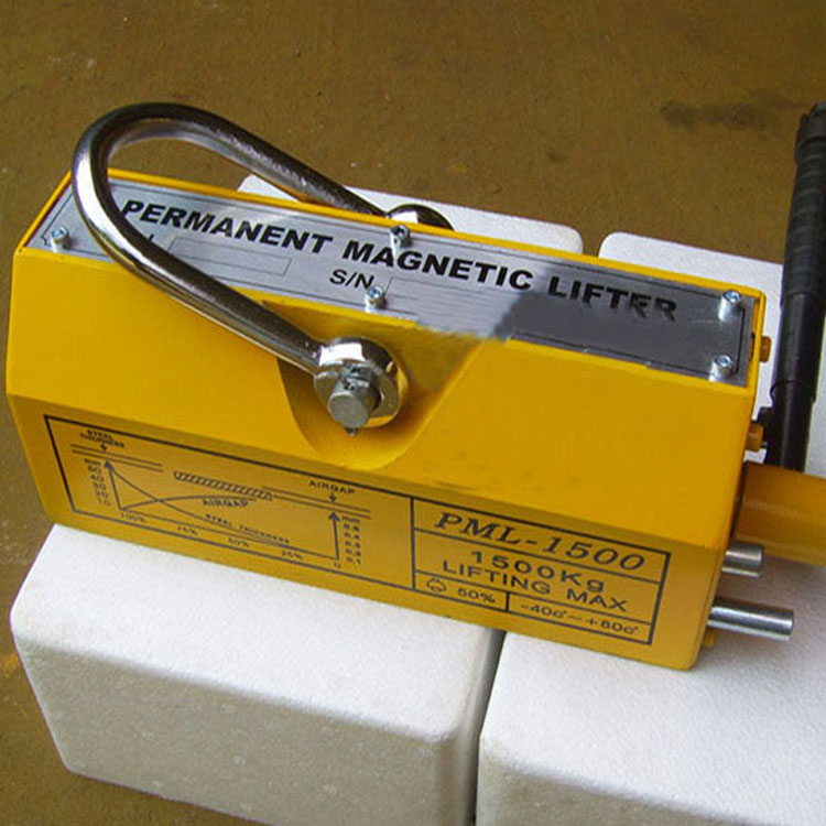 永磁起重器工作原理是利用了法拉第的电磁感应原理来制造的。内部采用高性能磁性材料钕硼砂,能够在磁路中产生很强的吸力,通过手柄翻转改变磁力线使起重器处于工作或者关闭状态;无需外界供电,是一种既安全,又高效率的新型起重工具。当起重器处于工作状态时,起重器底部的吸吊面构成了一对纵向磁极,将铁器材料的工件牢牢的吸住,底面上还有V形槽,因此既能吸吊板块状工件,也能吸吊圆柱形工件。也因此起重器对板材的厚度和面积都有严格的要求。