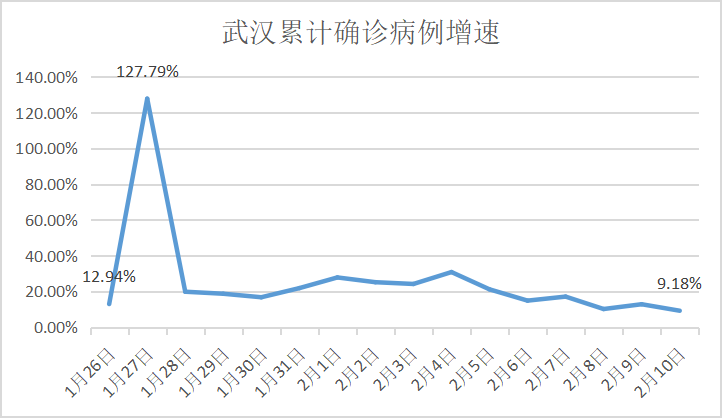 而从武汉市的累计确诊增速这一指标来看,2月10日为9.18%,半个月以来首次降到两位数以下。这也能从侧面佐证疫情防控的严峻形势有所缓解。