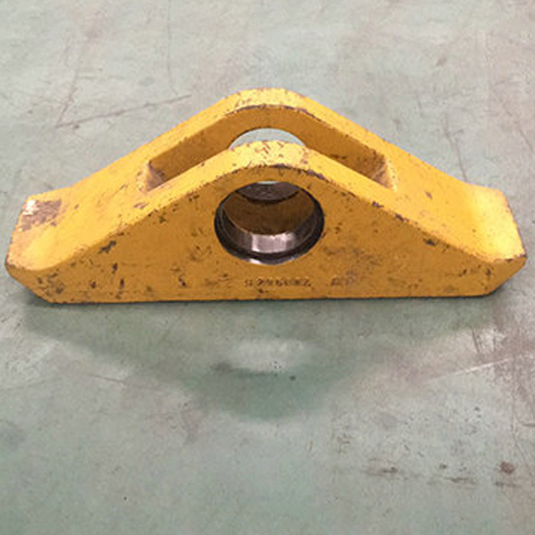 采煤机靠近采空区侧与安装在输送机上齿轨或齿条上内部有行走齿轮沿齿轨行走导向行走用。采煤机的导向滑靴装置的主要功能是在采煤机行进过程中起到支撑和导向作用,实现采煤机在刮板输送机上的平稳运行。导向滑靴是采煤机工作时的易损部件。