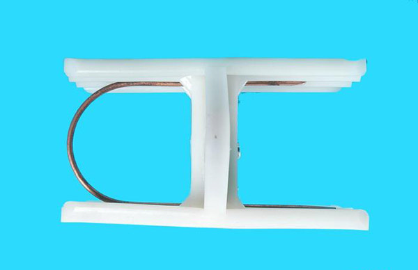 采煤机H型电缆夹是以冲压钢板做骨架由改性塑料(聚乙烯+阻燃剂+抗静电剂)经注塑加工而成,根据采煤机工作面需要通过专用螺栓连接成保护电缆或水管的保护通道。该产品克服了传统类型电缆夹机械强度低和两侧面无有效保护,电缆随电缆夹在拖缆槽中运行时易受槽内矸石、煤块磨损挤伤,导向效果不理想,易挂易折等缺点,对电缆常见的“拉”、“折”、“挂”、“砸”、“挤”等损伤原因均能克服,可对电缆及水管起到保护作用。