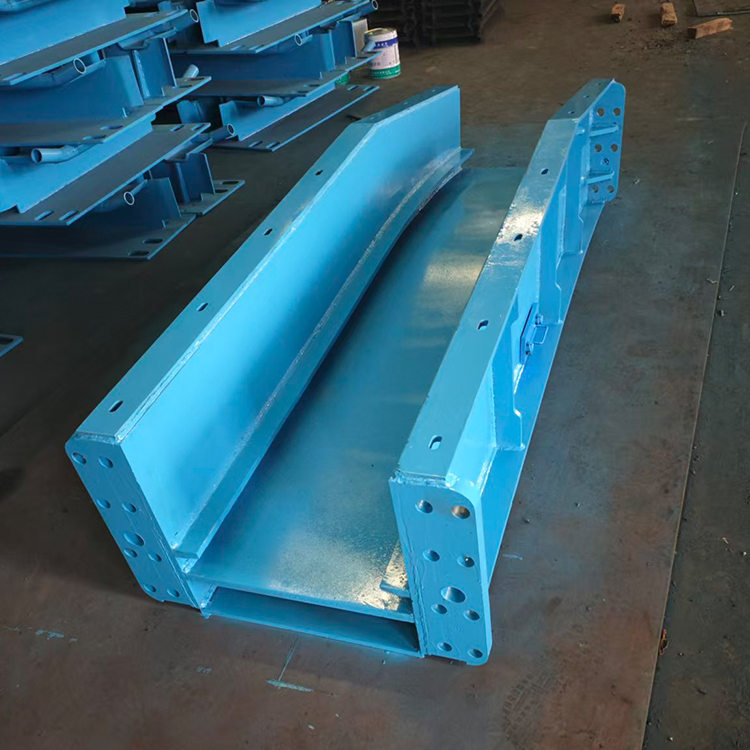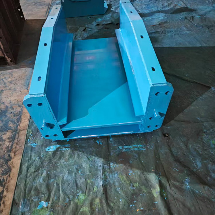 变线抬高槽适用于煤矿井下用730系列刮板输送机的输送段,一端与刮板输送机的过渡槽连接,一端与刮板输送机的中部槽链接,其作用是将过渡槽的高度调节到输送机中部槽的高度,将机头架、过渡槽的宽度调整为中部槽的宽度。一般通过一整套的变线、抬高槽的调整,来实现整个的调整过程。