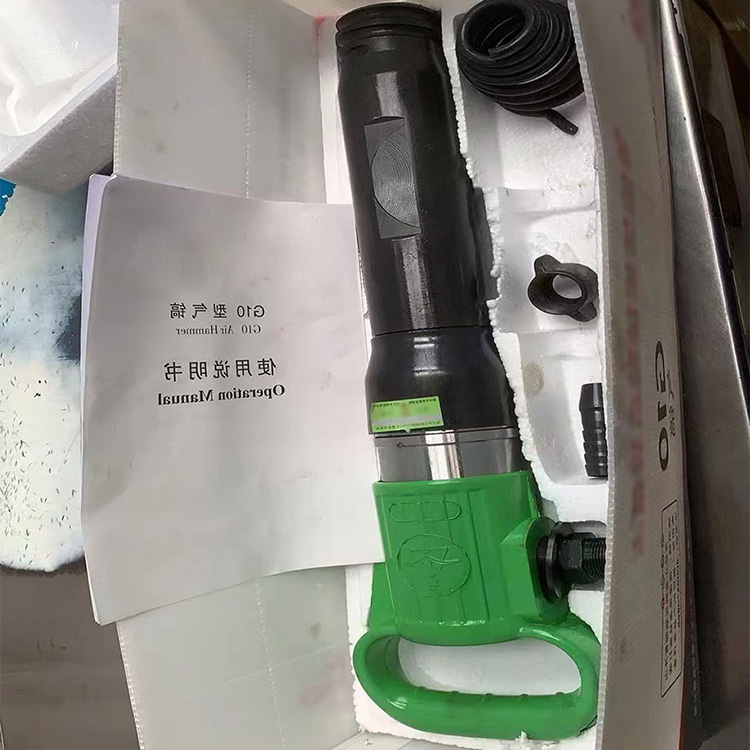 G10风镐以压缩空气为动力工具,用压缩空气由管状分配分流阀轮流分配于缸体二段,使锤体做反复的冲击运动,冲击镐钎尾部,使镐钎打入岩石或矿层中,致使其分裂成块。