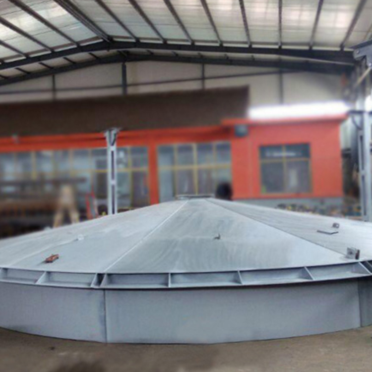 1、防爆盖采用锥形结构分四个部分联接而成,每部分由钢板、角钢组焊成型