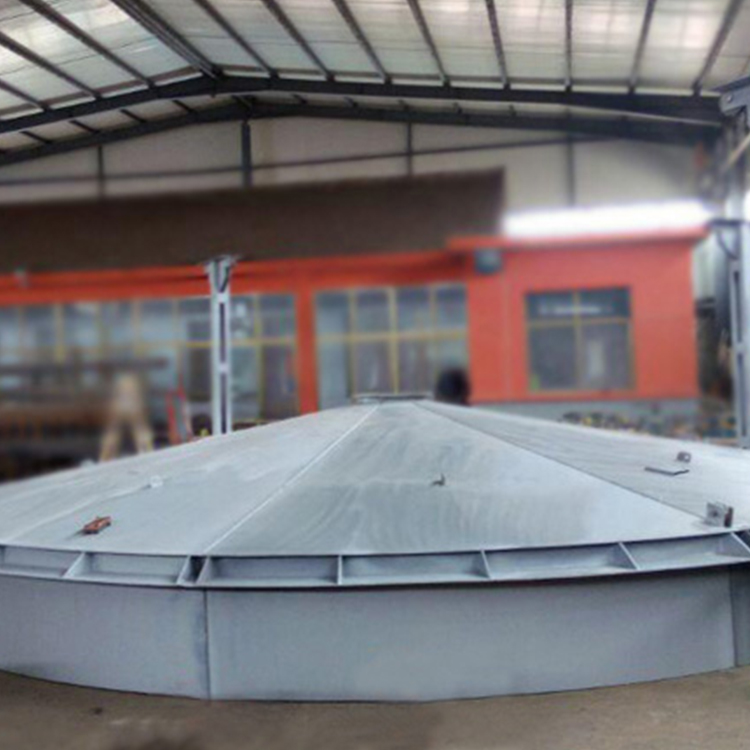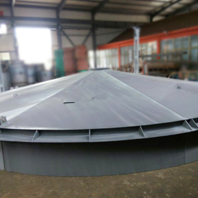 1、防爆盖采用锥形结构,分四个部分联接而成,每部分由钢板,角钢组焊成型;