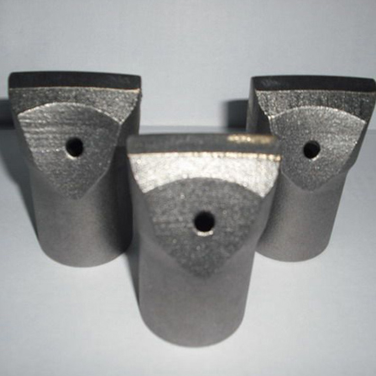 一字型系列钎头制造工艺简单,重磨方便,工作可靠,对岩体性能的适应性强。在对混凝土等进行的钻孔作业中,能缓和钻孔状态突然改变的情况,使钻孔作业稳定,即使在产生大粒的切屑时,钻孔效率也不致降低。常配合轻型内燃、电动、气动和液压凿岩机,在各类岩石中钻凿直径D50mm以下的岩孔。是我国采掘工业中,中、小直径岩孔钻凿工程所使用的主要钎头品种。