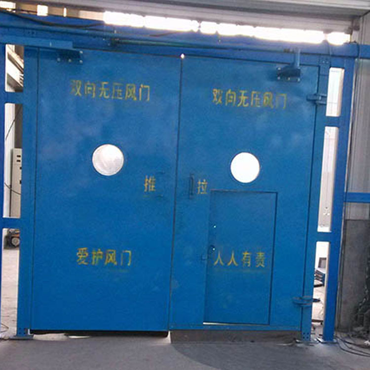 电动无压风门为钢结构风门,适用于矿井回风巷各联络巷之用,可满足风压高、低反风要求,无须再设置反向风门,一道风门可代替原正反两道风门,在高负压下用较小的力可将门平稳的打开。两扇风门联锁开动时同单扇风门开闭一样轻松便捷,安装透明窗使风门内、外具有可视性。采用定制平板式密封带的密封方式更加美观,密封更加严实。