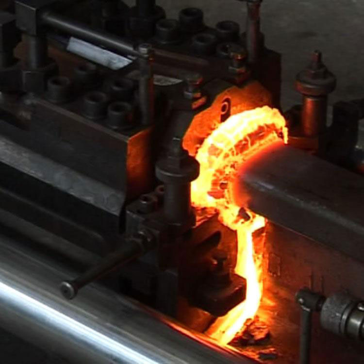 3、把加热器放在正火架上,用火钩摆动加热器,加热宽度60mm±10mm,加热温度850~900℃,使用比焊接稍弱的火焰(弱碳化焰较好),这种火焰显得柔和,加热时间稍长,组织的均匀化程度稍好。热处理后,采用风冷或雾冷。