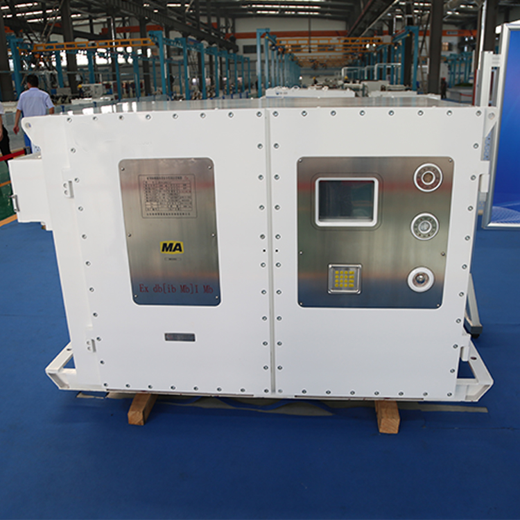 矿用隔爆兼本质安全型变频器(以下简称变频器),是集变频调速技术与防爆技术于一体的高新技术产品,已经取得了MA认证和防爆认证,并通过了电磁辐射和传导检测(EMC)实验。该产品的设计符合新版《煤矿安全规程》和相关产品标准,主要应用于煤矿井下,具有煤尘、瓦斯等爆炸危险环境中,实现电动机软启动、软停车和运行过程中的速度控制。该变频器将中压逆变技术、直接转矩控制技术、快开门隔爆外壳和超级散热技术进行完美结合,可根据电机的负荷变化,调整电机工作频率,达到所需的转速和转矩,也可与现场传感设备形成闭环系统,实现自动控制,具有明显的效应,实现安全经济运行。