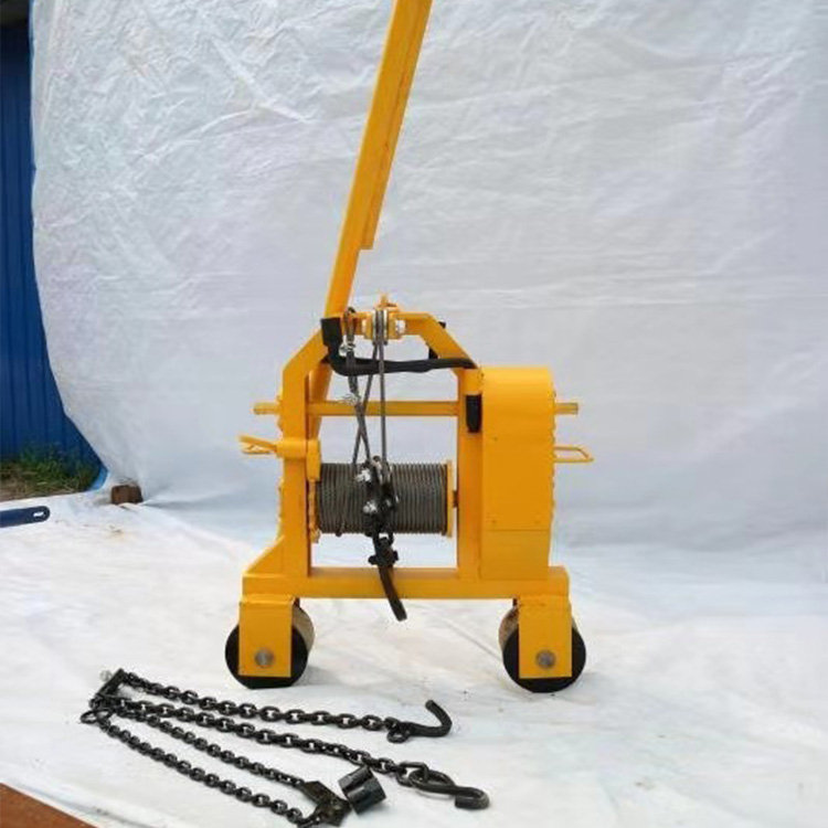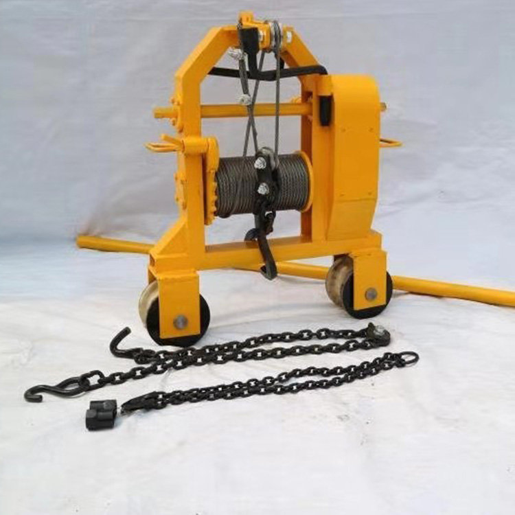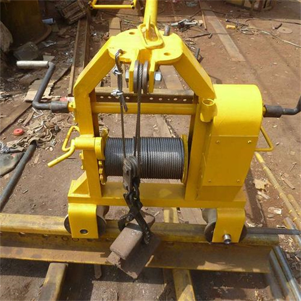 钢轨搬运车采用二级齿轮减速传动,并设有棘轮,可将较重的标的物直接从路肩托拢吊起运走,具有快速起重吊运效果。购买一组(三台)可完成拉运钢轨、辙岔心、吊运轨枕、道碴以及拖拉成组道岔等较困难、安全系数小的作业。