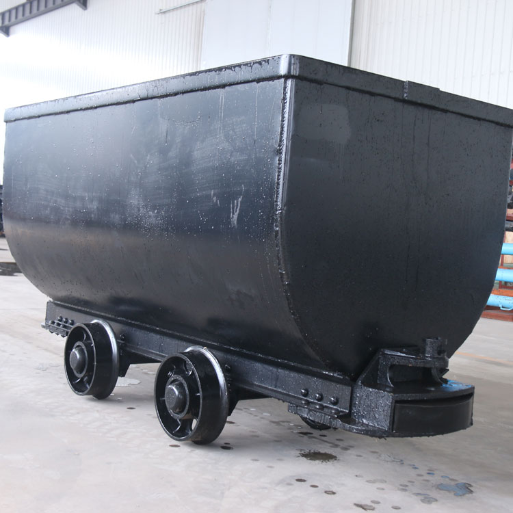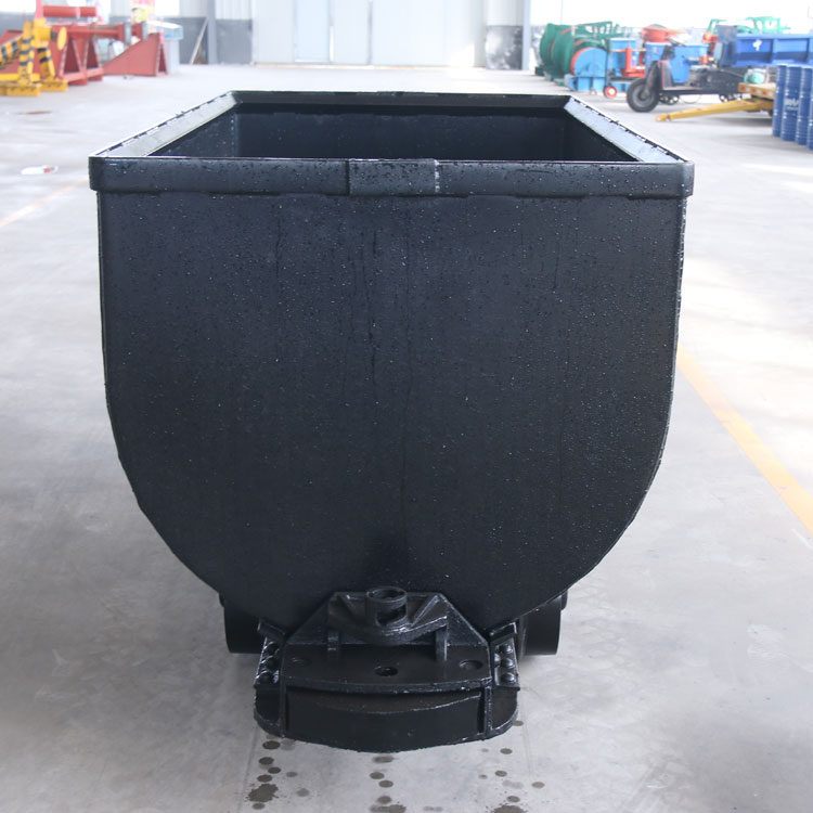 MGC1.7-9D固定车箱式矿车由车箱、车架、联接器、缓冲器和轮轴以及轮子等组成。车箱是由钢板焊接而成,一般标准厚度为5mm,车架槽钢采用矿车专用异型槽,车轮采用铸钢。装有滚柱轴承的轮轴运行起来非常轻快。行走机构是由4个车轮和2根轴组成的两个轮对,固定式矿车具有结构简单、坚固耐用,阻力系数小、承载能力大、维修方便等特点,矿车卸载使用翻车机将整个车体翻转,固定式矿车可以用机车或卷扬机牵引,与翻斗式矿车相比来说卸料时要借助其他的设备来进行翻转工作。当卸料时要使用翻车机进行工作。